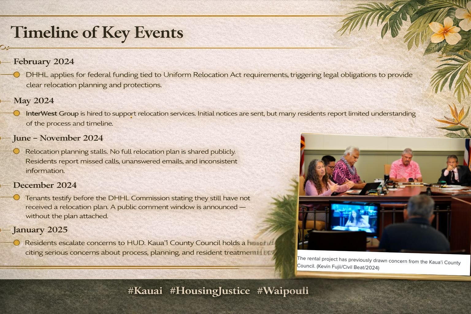 For many residents at Courtyards at Waipouli, relocation was presented as orderly, lawful, and humane - backed by federal protections under the Uniform Relocation Act (URA).